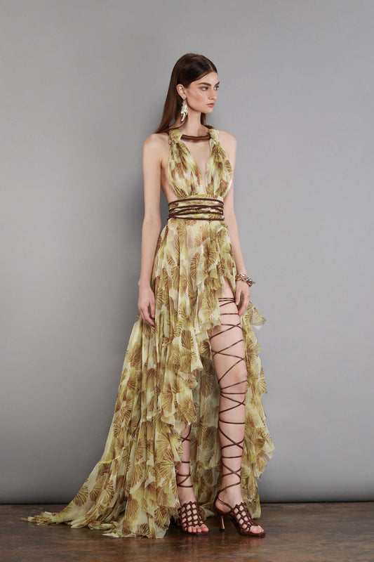 ANNA HALTERNECK NEON MINT TIERED GOWN