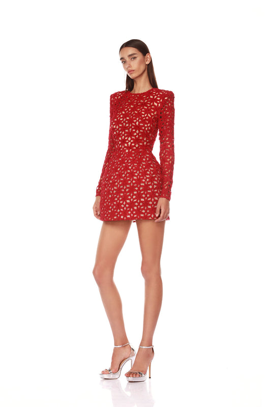 NEW LEONA EMBROIDERED HALTERNECK MINI DRESS