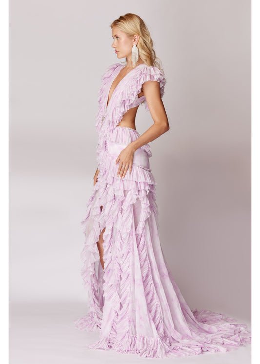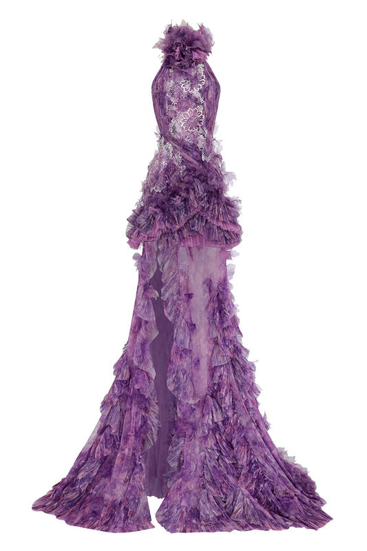 NEXW LACE DETAILED RUFFLED AND PLEATED MAXI DRESS