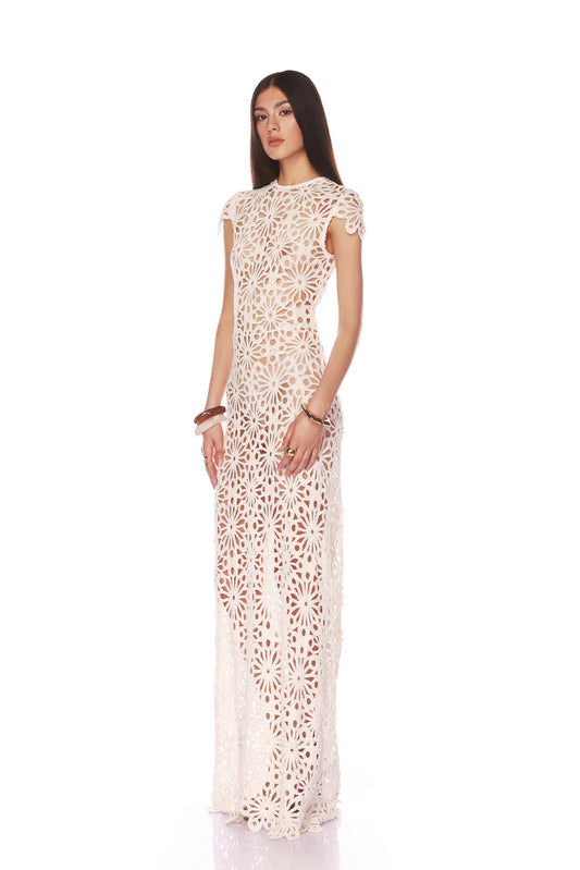 NEW MARLEY CAP SLEEVE WHITE CROCHET MAXI DRESS