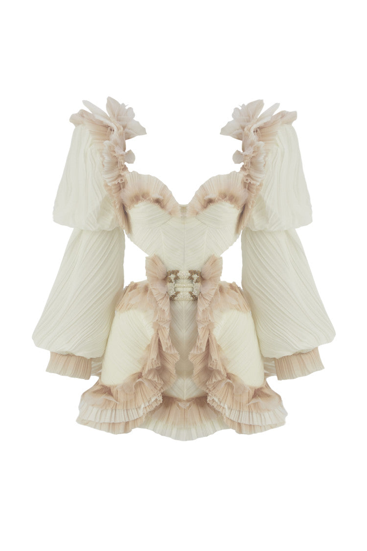 Mini dress with hand-made flower shaped emballisments