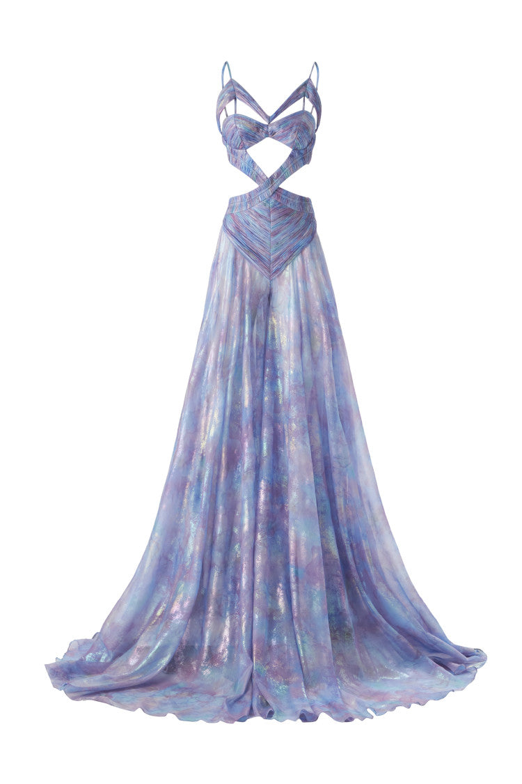 Cut Out Detailed Draped Chiffon Maxi Dress