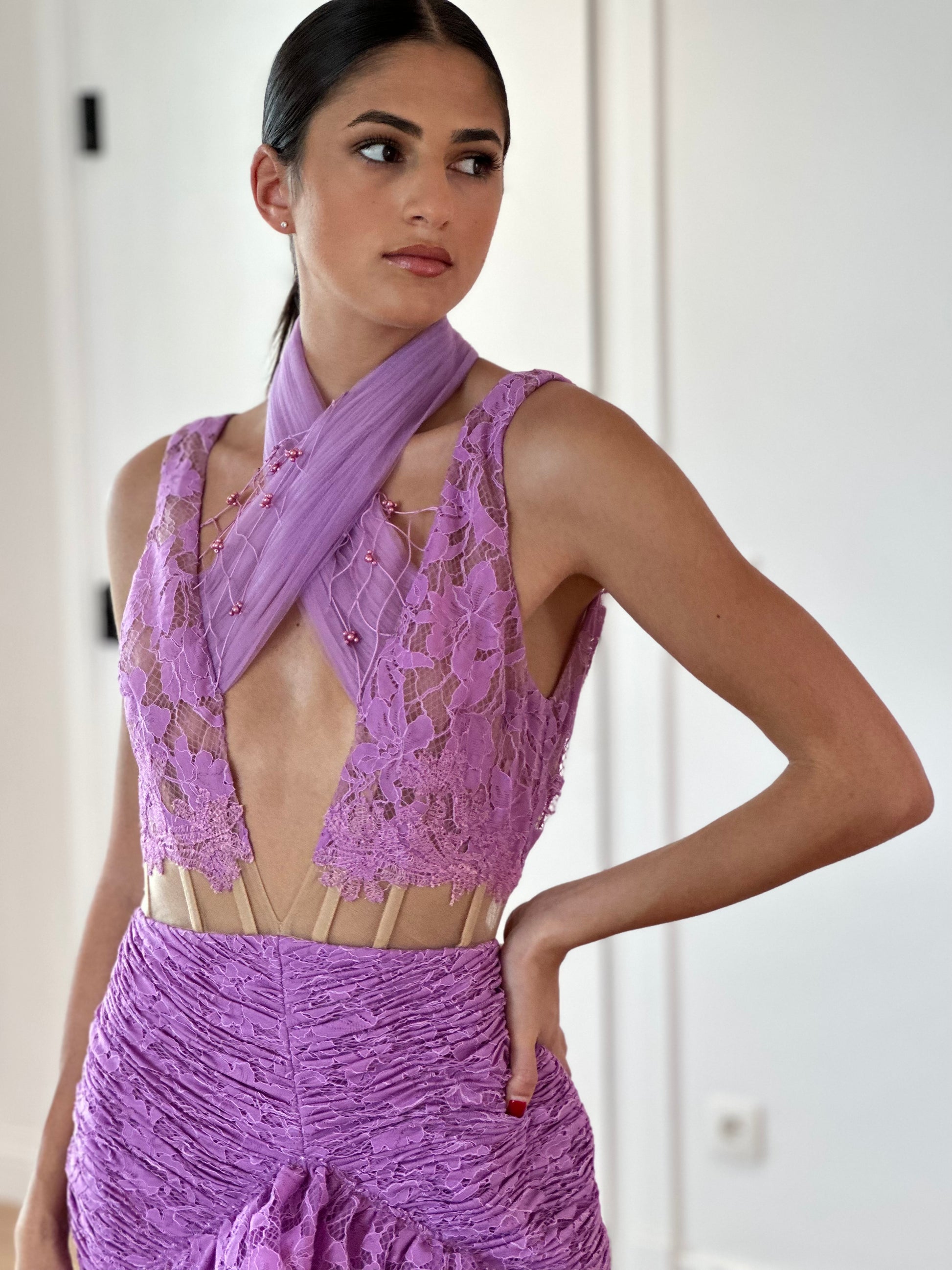 CROSS HALTERNECK SLIT DETAILED MAXI DRESS